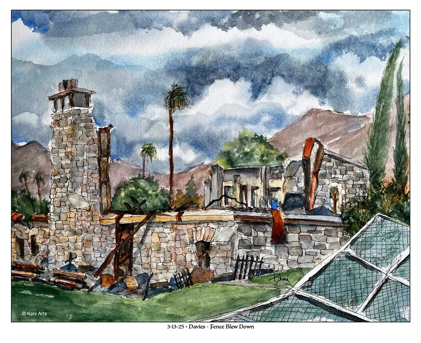 There are times when words don’t suffice, and I turn to art to speak for me. I met Keni “Arts” Davis, plein air (on-site) artist at the Altadena Art Show this year. I know him through his artwork. His pieces serve as a visual documentary of the places that characterize Altadena. He is an artist and a visual historian. Keni’s latest series, “Beauty for Ashes,” consists of before and after the fire paintings of places that were destroyed by the Eaton Fire. A fellow displaced fire survivor and Altadenian of over 40 years, he lost his home and is rebuilding.