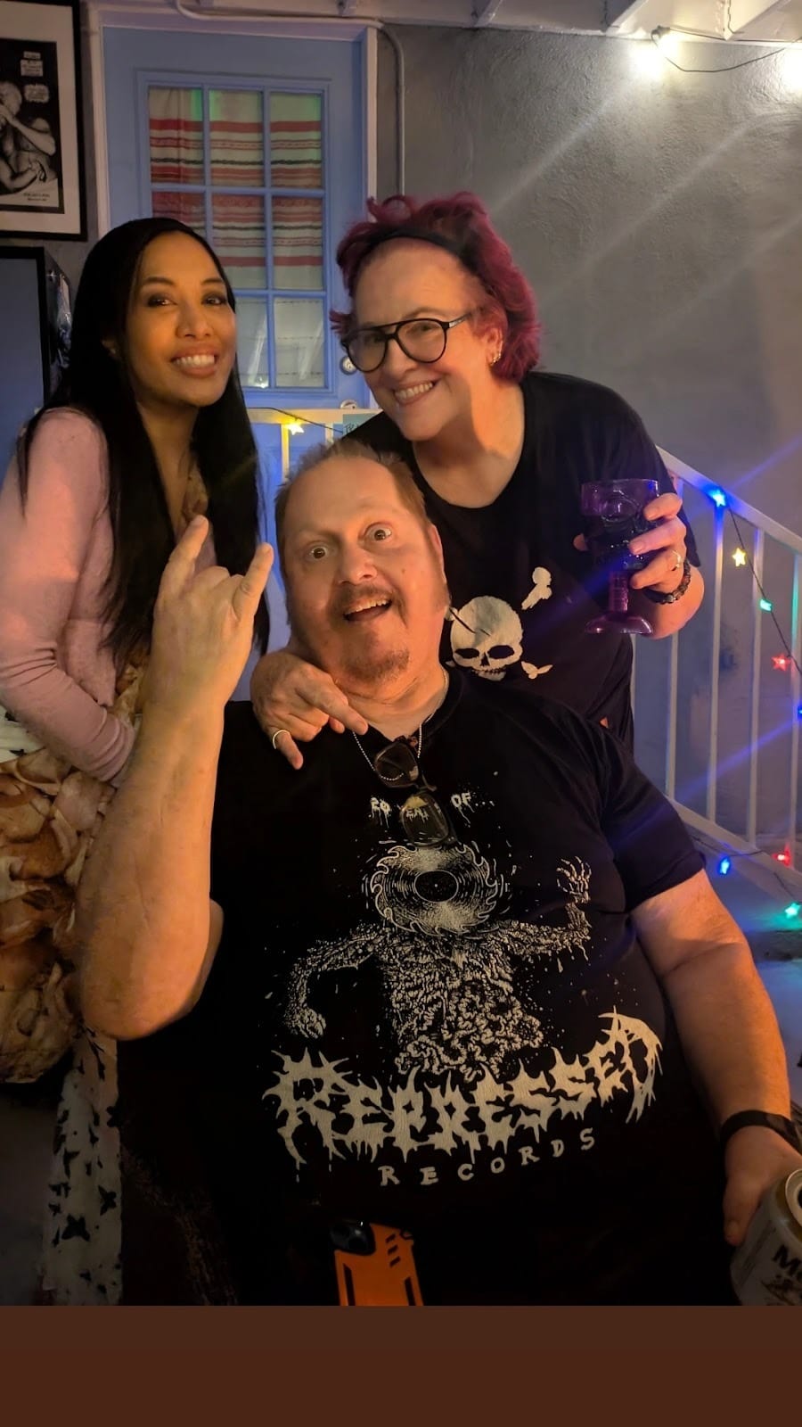 Altadena is changing. With many burned lots sold to outside developers, our deep community history and legacy are at stake. I wanted to capture the spirit of our unique and special, tight knit community by gathering with long-time Altadenians to share memories of our everyday lives. By honoring our history, we can inform the future. So I reached out to my former neighbors and long-time Altadenians, Susan Doepner-Senac and Hermann Senac. Susan, a wildly talented costume designer, lost 30 years of costumes in the fires, some that she handmade herself. Her husband, Hermann, a gifted musician and drummer since 1974, lost his 50-year music collection, instruments, and equipment in the fires. Tragically, two of their sweet pets also perished in the fires.