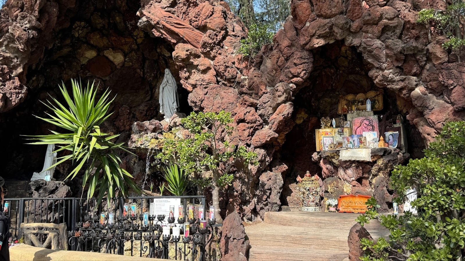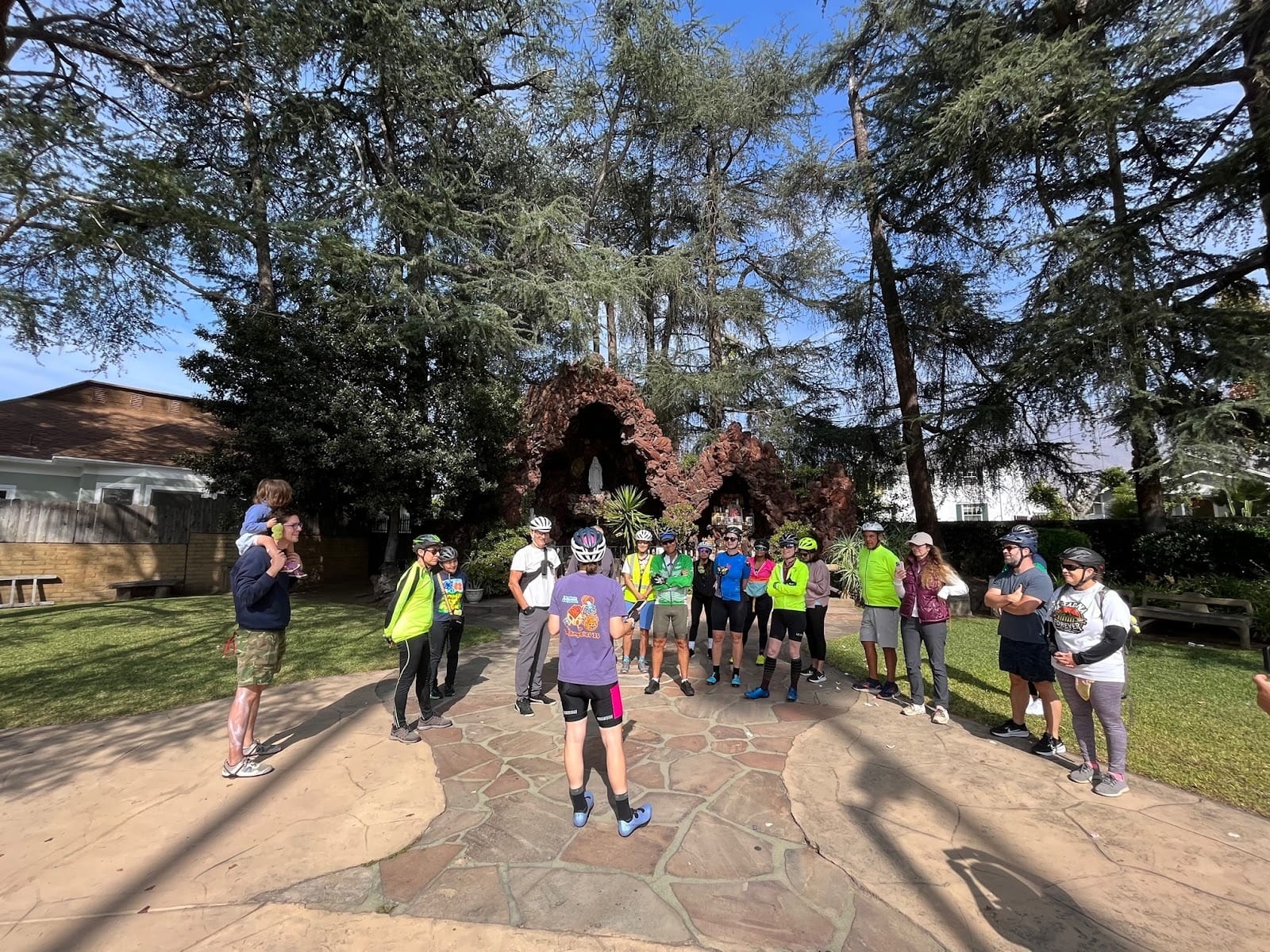 After cycling through the late-morning sun, we stopped to make time for some quiet reflection at the serene St. Elizabeth Church grotto, built in 1939. According to the Altadena Historical Society, the grotto was constructed by Ryozo Fuso Kado, a fifth generation stone and rock craftsman, to mirror the famous grotto in Lourdes, France. Hundreds of thousands are said to have made pilgrimage to the grotto since it was established nearly a century ago. Tucked behind rows of trees and shrubbery on New York Ave., the historic site features Carrera marble statues of Our Lady of Lourdes and St. Bernadette and a peaceful stream of running water, which some believed had power to heal the sick.