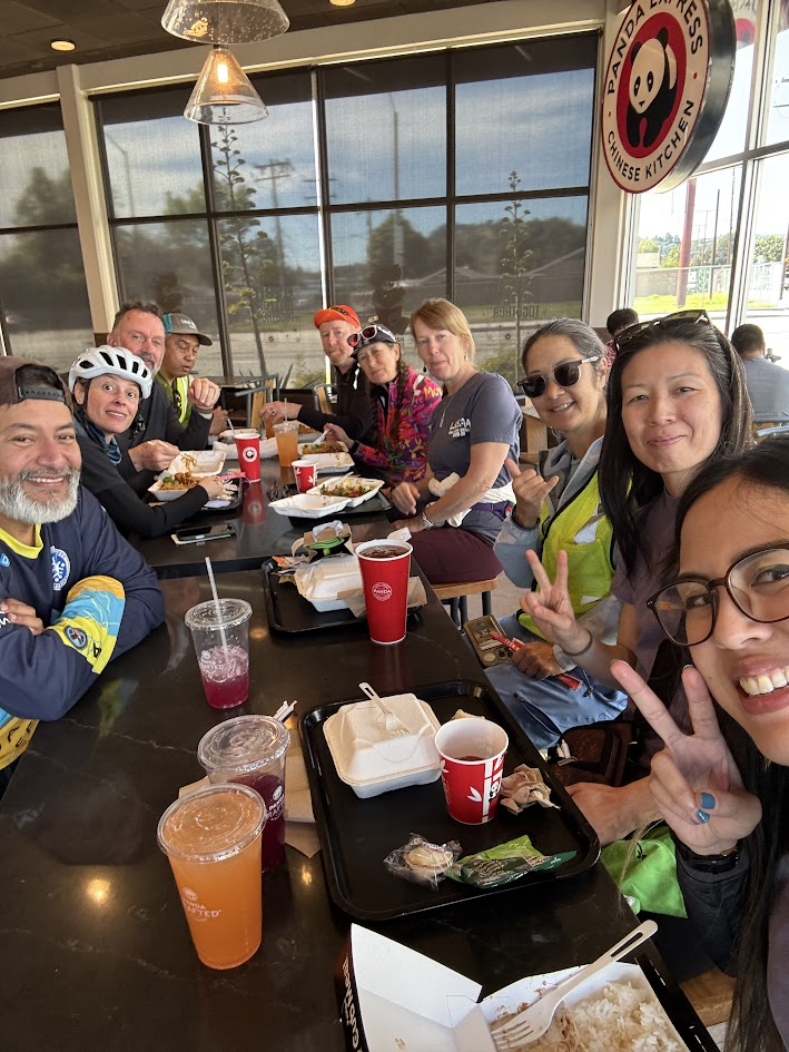 Some riders left early, while others joined us for the last family-friendly leg of the route, but we ended our bike ride at Panda Express for lunch and conversation. Manager Andrea and her team welcomed us warmly. There were smiles all around from riders. “Gorgeous!” “Amazing!” We truly lucked out with the beautiful sunny weather.